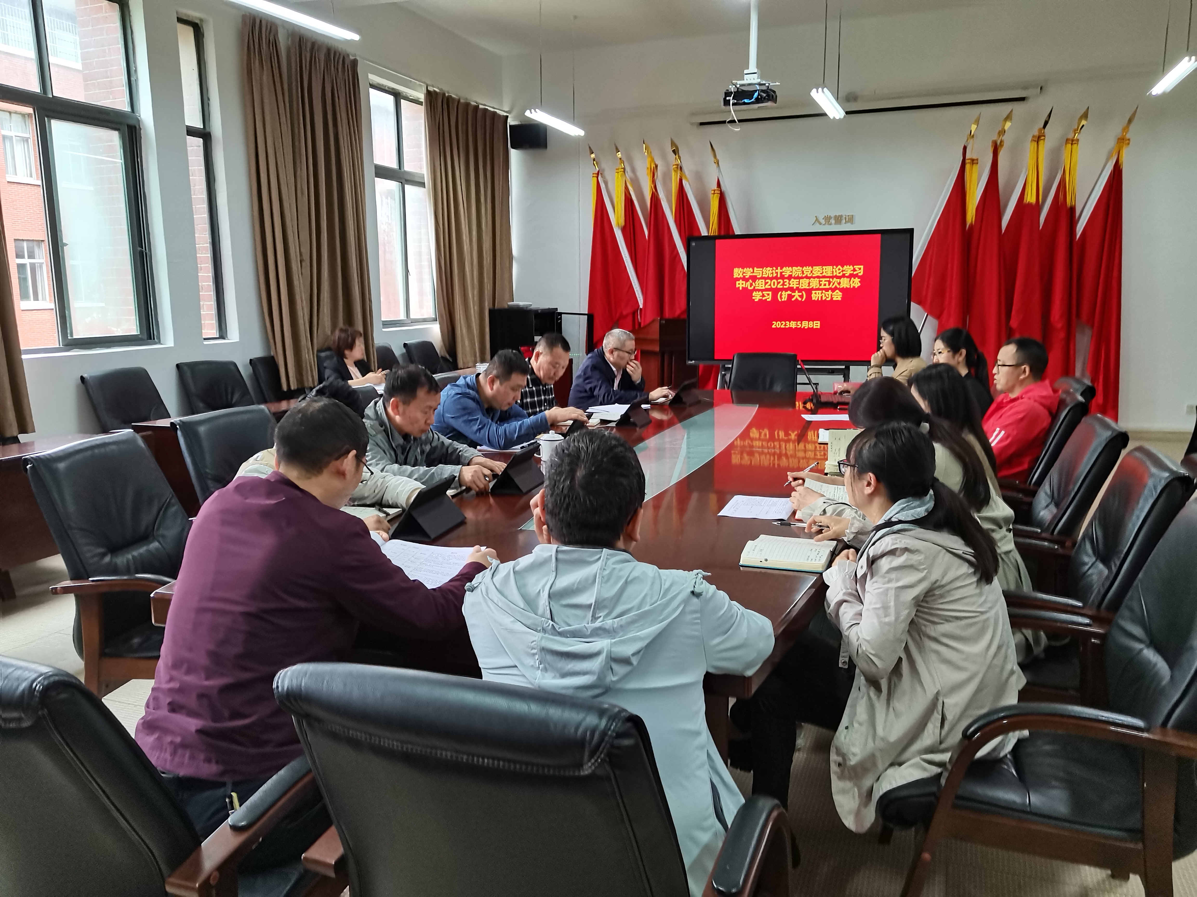 5月8日下午,公司党委理论学习中心组在志学楼331会议室召开2023年度第五次集体学习(扩大)研讨会,公司领导班子成员、各科室负责人、各支部书记参加会议,公司党委书记虞帆主持会议。
