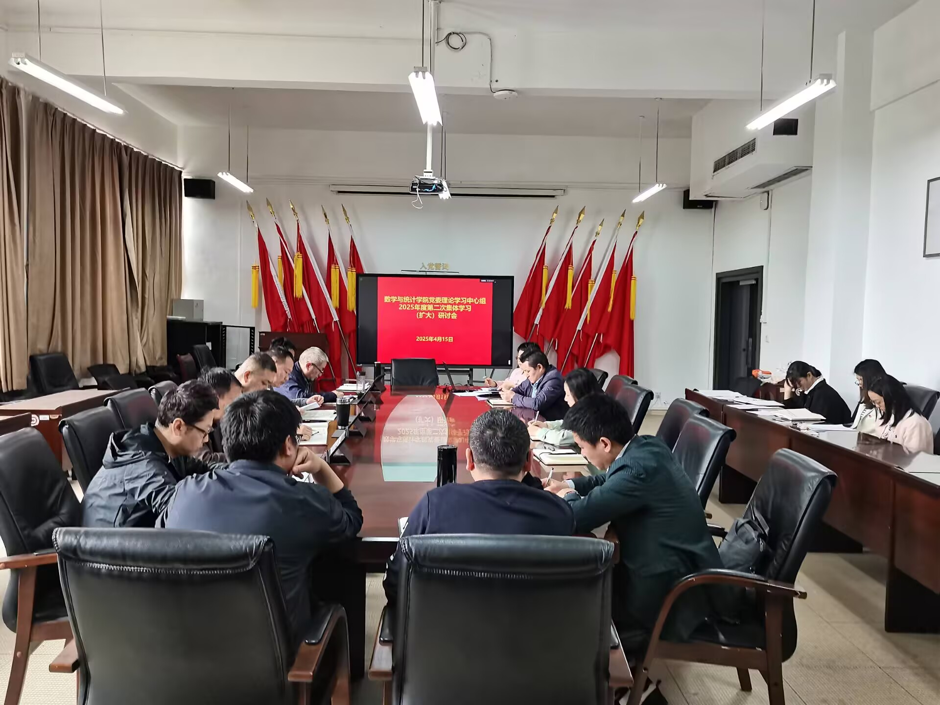 4月15日下午,公司党委理论学习中心组2025年度第二次集体学习(扩大)研讨会在志学楼331会议室召开。公司党政领导班子、各科室负责人、各支部书记、各系主任参加,公司党委书记虞帆主持。
