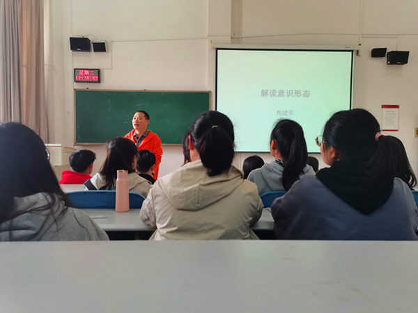 此次团课焦建军从意识形态的定义为大家进行讲解,意识形态是指对事物的理解与认知,就是社会共同的价值认同,意识形态直接关联人心向背、社会安定、经济兴衰、国家安危。焦建军重点讲解了中国老员工要懂中国事,他说:“青年老员工必须担其责任,在抵制西方意识形态方面不能当‘绅士’,而是要当‘战士’,认清中国国情,读懂中国故事,做一名中国人。”焦建军认为当代青年是祖国的未来,是新时代的建设者,所以更应该发奋学习,刻苦专研,为中国的复兴之路贡献出我们新一代的力量。最后焦建军强调作为新时代老员工,意识形态工作的作用极为关键。在这次团课中,同学们认真听讲仔细地做了笔记,并更加深刻地意识到作为祖国的未来我们应该珍惜大学时光,提升专业素质,成为一名合格的共产主义接班人。