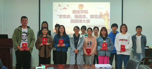 参赛选手紧紧围绕“学党史、强信念、跟党走”的主题,从五四精神、红船精神、爱国主义等方面挖掘“微”主题,创新授课形式和方法,综合运用PPT、视频、歌曲等丰富多彩的表现形式,将理论知识转化为贴近生活、通俗易懂的小道理,展现了“微团课”的魅力与教育意义。比赛如火如荼的进行着,在激烈的比拼中,2018级统计学班的何菲同学以《重燃贵州红色峥嵘岁月》一课,获得本次比赛一等奖。