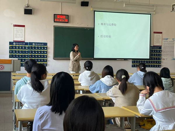 活动中,王海珍为同学们讲解了运费险的例子和关于概率的题目,在老师细心认真地讲解下,同学们发现概率并不只是冰冷的数字,它与我们的生活息息相关。接着,王海珍老师为了让同学们更加深刻的体会概率的奥秘,选了一道题让同学们进行解答。在解题过程中,同学们发现以前让人头疼的数学也变得丰富多彩。活动的最后,主持人向同学们展示数学加油站的线上活动板块,并征集下一次数学加油站的主题,