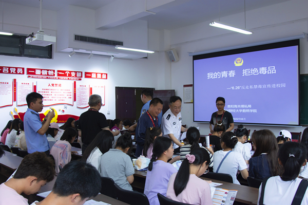 会上,孙伟就现阶段毒品的更新换代速度快,毒品犯罪具有隐蔽性和欺骗性的特点等方面作了介绍,并提醒同学们要提高防范意识,保护好自己,提高全民禁毒拒毒的意识。姜佳旻对有关如何有效的拒绝和防范毒品、走私等方面的知识进行了宣传。