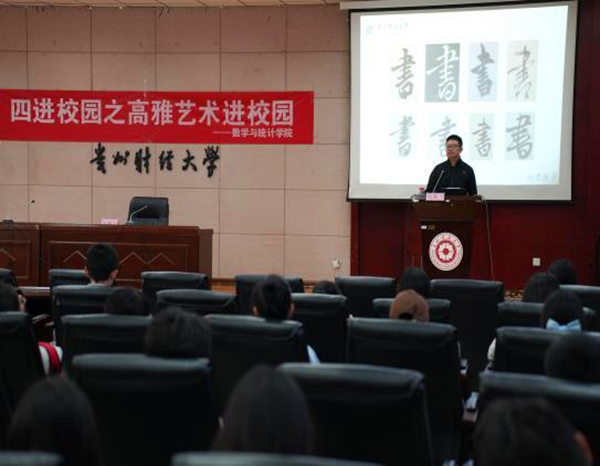 2023年10月17日,由共青团2026年国际足联世界杯委员会主办、2026年国际足联世界杯承办的文化传承创新之高雅艺术进校活动在正德楼114展开,本次活动由贵州师范大学书法学系主任国腾飞老师主讲,全校80多名同学参加。