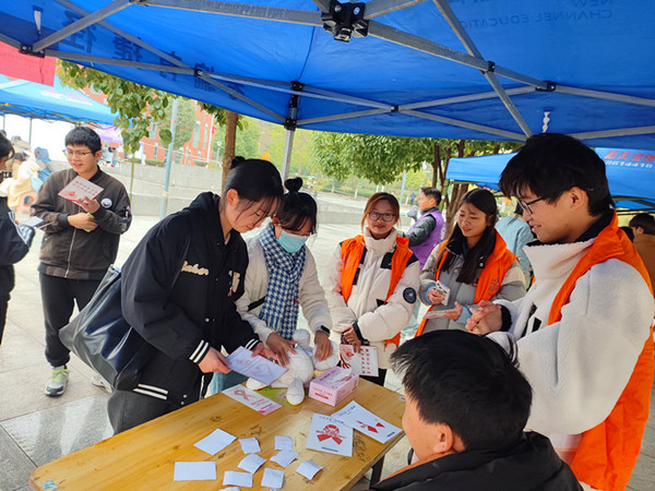 活动现场摆放了防艾宣传语,通过生动的画面和感人的故事,向师生们传递了艾滋病防治的核心信息。为了让防艾知识更加深入人心,活动现场设置了知识问答、互动游戏等互动体验活动环节,通过亲身体验和实践操作,加深对防艾知识的理解和认识。同时,志愿者们还在现场发放了防艾宣传手册和纪念品,让师生们掌握更多防艾知识,传递给更多的人。