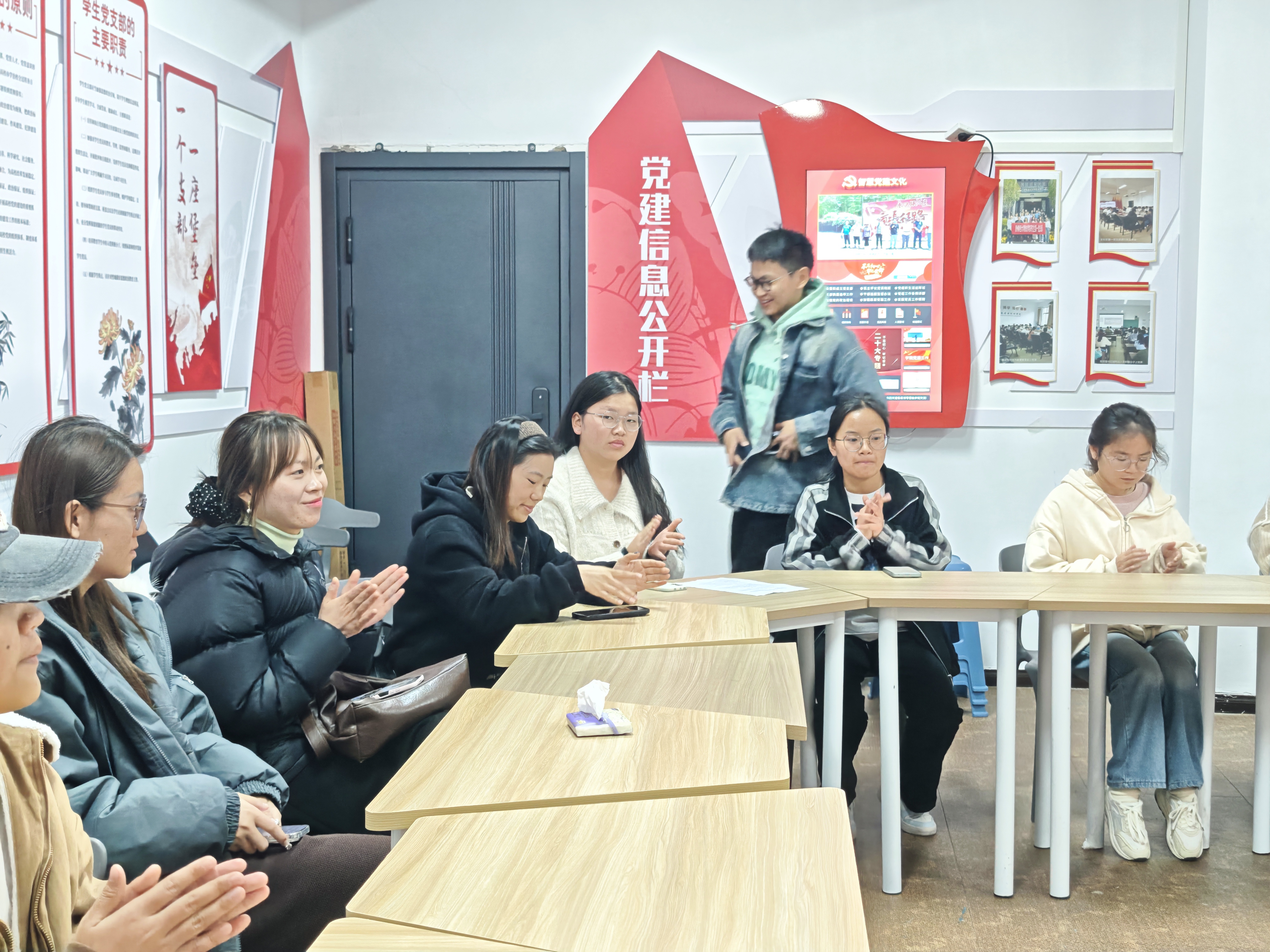 活动中,同学们以“青年视角看全会”为切入点,结合实际对党的二十届四中全会精神进行学习宣讲并分享学习体会。2023级崔梅同学结合数学专业特色,阐释了如何用数据思维服务基层发展,呼应全会“高质量发展”的部署;2023级陈清同学以参与社区志愿统计的经历为例,解读了全会“保障和改善民生”的实践内涵;2024级刘嘉思同学则围绕“青年创新”,探讨了学科能力与国家战略需求的结合方向。
