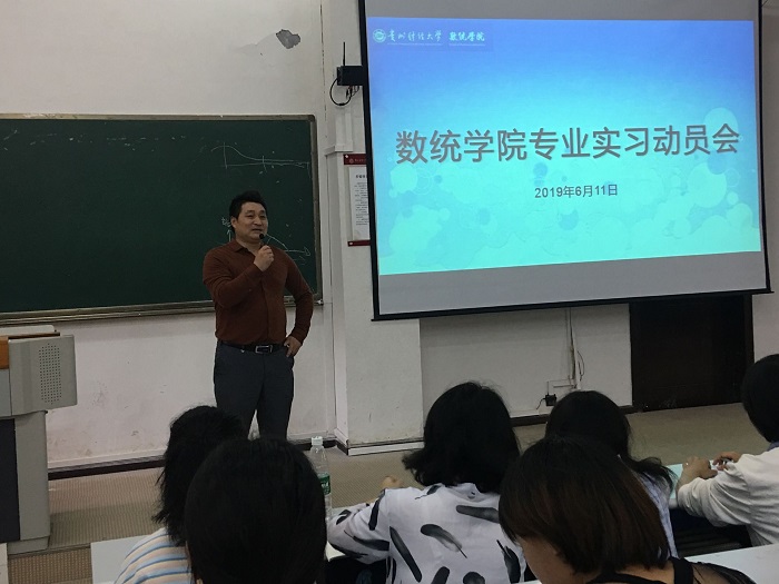 动员会上,实习单位代表,中软国际阎赫总经理首先为同学们做了题为《大数据时代下的数学之美》的知识讲座。他介绍了当前大数据及人工智能行业的发展现状,并提出数理统计专业如何与IT和互联网结合,拓宽将来的就业面。