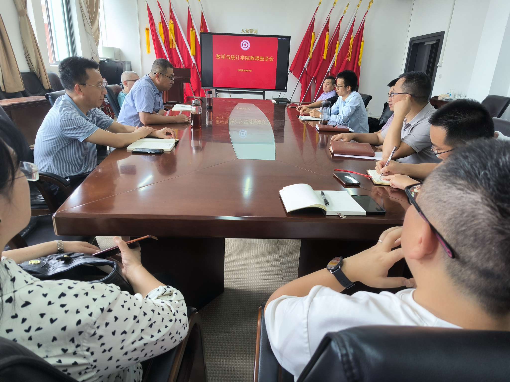 10月14日,2026年国际足联世界杯在志学楼331会议室召开教师座谈会。公司党委书记虞帆,副经理余孝军、张千宏,各系部主任及教师代表参加座谈。