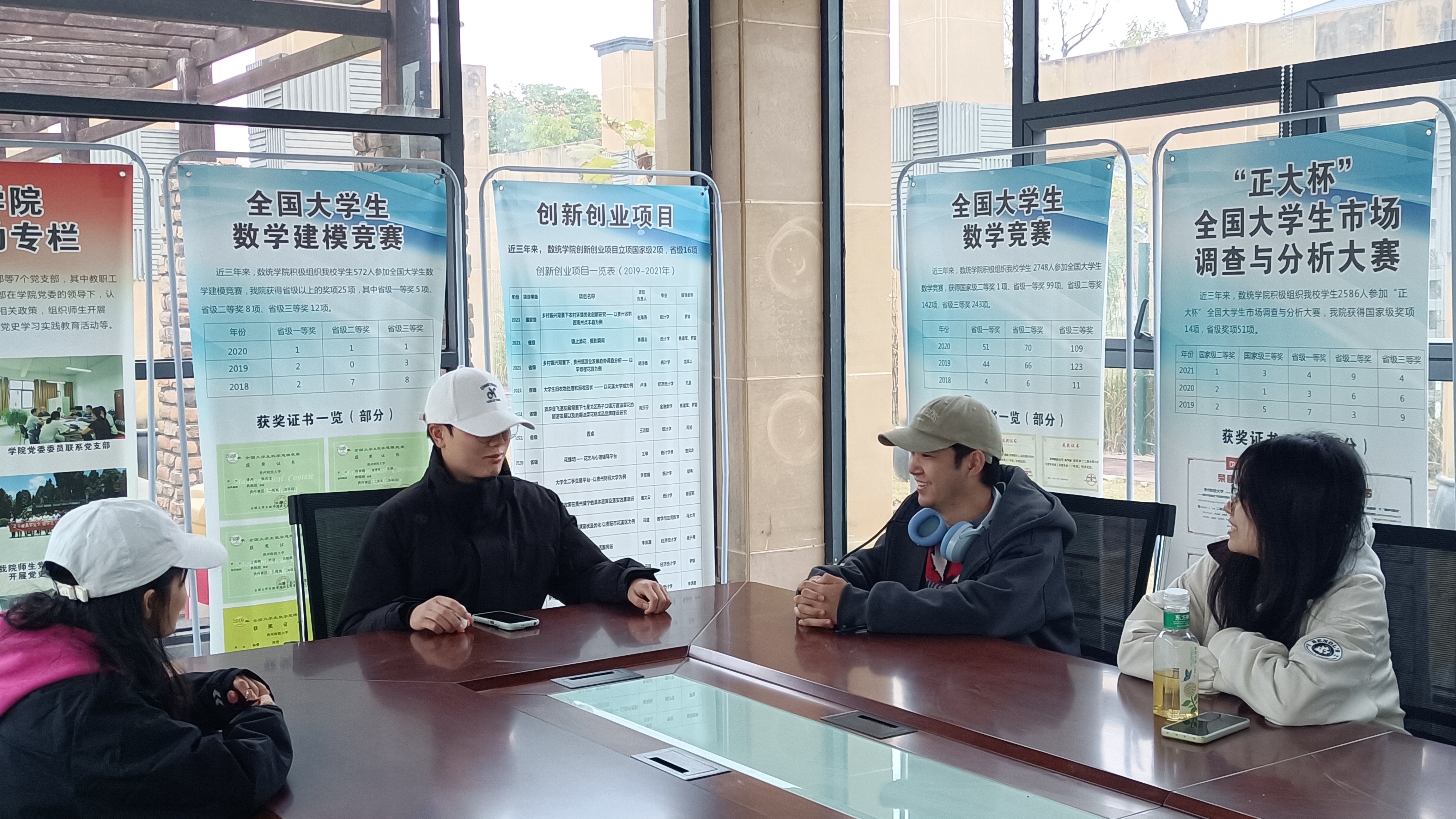随后,在李向盘带领下,成员们来到学科竞赛展示区参观,这里陈列着历届竞赛的优秀作品,涵盖市场分析、数据调查、营销策划等多个领域,每一件作品都展示了参赛者的智慧与才华,令人赞叹。