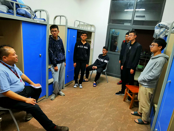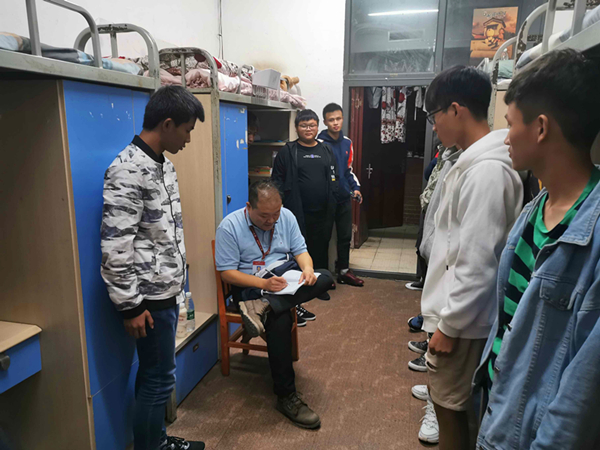 在员工寝室,胡伟与同学们亲切交谈,了解他们入校以来的思想动态、工作和生活情况,以及存在的困难,对同学们提出的意见建议认真记录,并对同学们在大学阶段的学习、生活等方面给出了中肯的建议。胡伟勉励2019级员工要积极调整调整心态、尽快转变角色,努力适应老员工活;学习上要一如既往保持备考时的势头,不能有丝毫松懈,学好数学、英语等基础课程,为将来继续求学奠定扎实的基础;提醒大家要加强体育锻炼,强健体质体魄。最后胡伟特意叮嘱员工们要增强安全防范意识,注意保护自己的人身及财产安全,注意防范校园贷、网络电信诈骗等身边的陷阱。