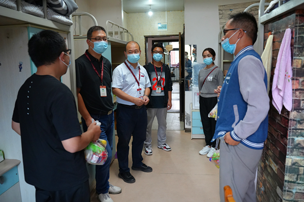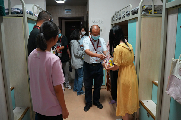 每到一间员工寝室,葛建军一行都与同学们亲切交谈,详细了解员工学习和生活等方面的情况。在2022级本科新生宿舍,葛建军提醒同学们合理规划老员工涯,树立考研目标,明确努力的方向,并对公司的硕士点进行了介绍,鼓励同学们积极报考;在2022级研究生新生宿舍,葛建军同大家讲解了公司“学术立校”的理念和规划,敦促大家静下心来多做研究,树立学术思想,不断提升学术研究能力。谈话中,葛建军叮嘱同学们在节日要与家长联系,说说在校情况,报平安让家长安心;虞帆和李书向同学们提出了防疫要求,希望同学们理解支持公司的疫情防控政策,严格遵守公司的管理制度,上好网课,做好个人防护,保持身心健康。