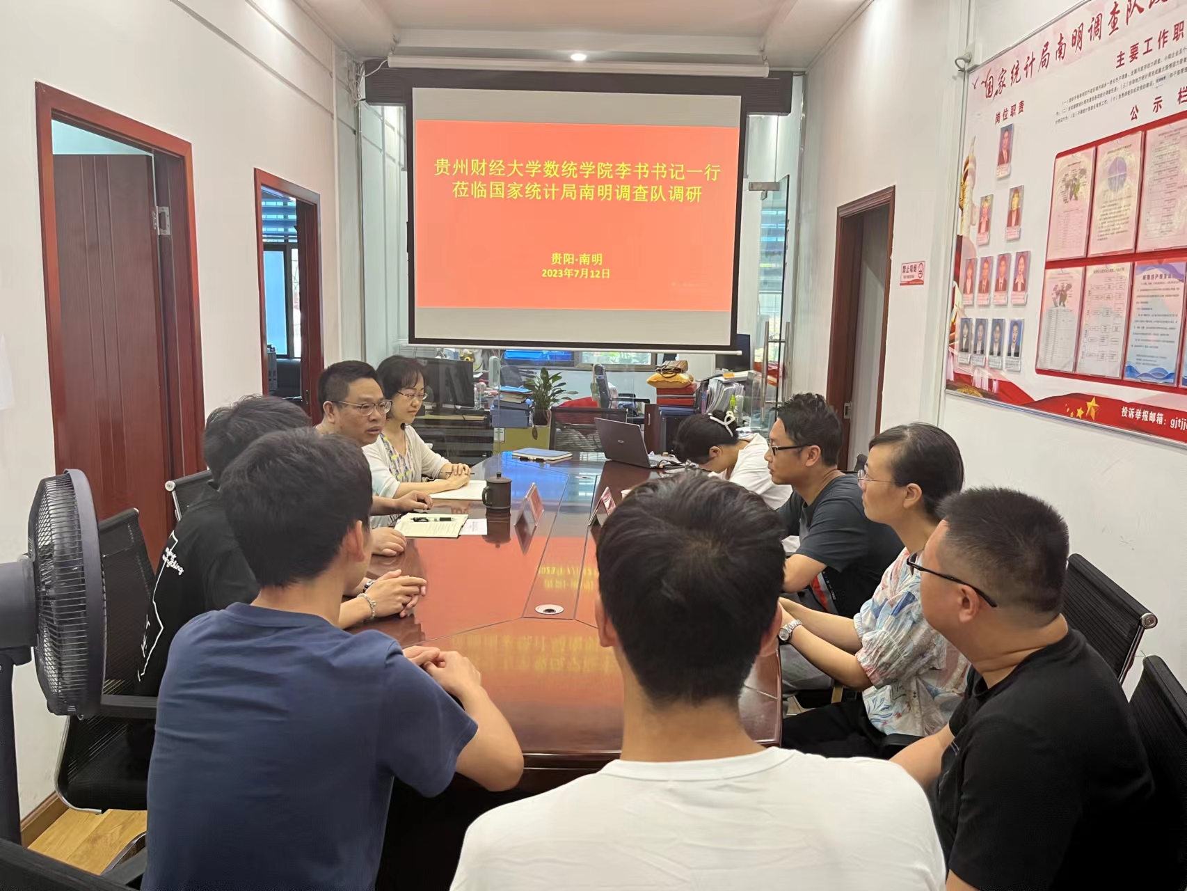 7月12日下午,​公司党委副书记李书及相关指导老师一行4人赴国家统计局南明调查队看望2020级正在参加专业实习的本科生。南明调查队队长何宇、纪检书记刘珂君、办公室负责人李杨热情接待了我们并组织了师生座谈会。