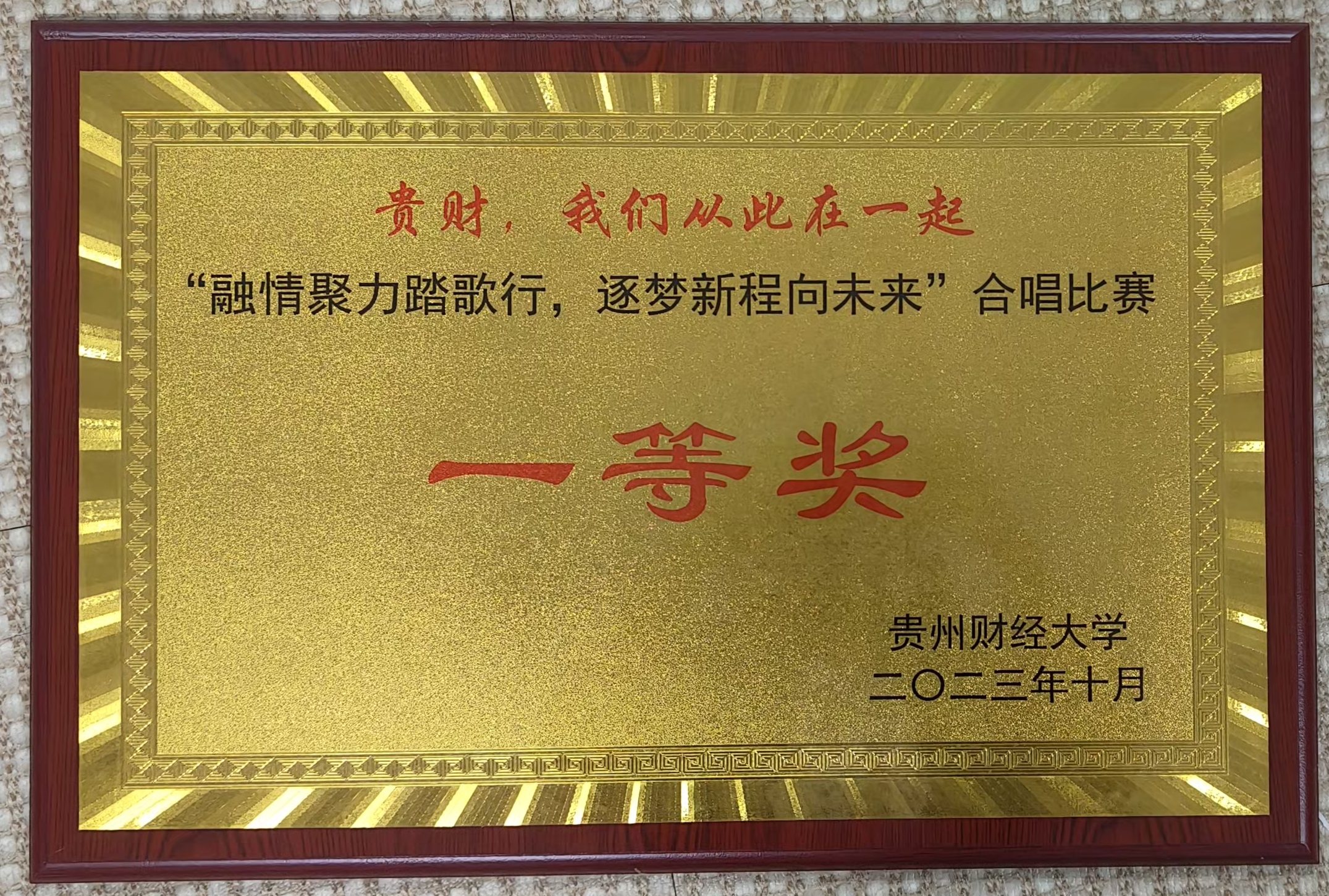 2023年11月14日在公司举办的“贵财 我们从此在一起—— 融情聚力踏歌行 逐梦新程向未来”合唱比赛中,公司以出色的表现赢得了一等奖,展现了公司良好的音乐素养和团结协作的精神。