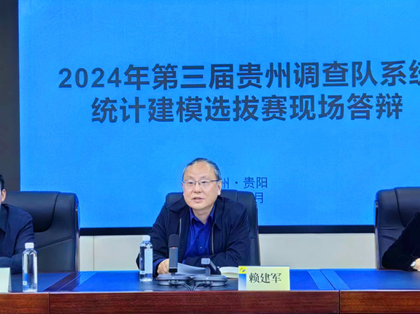 赖建军首先对悉心指导的老师们表示衷心的感谢,为参赛同志们的辛勤付出点赞喝彩。他指出,前三届全国统计建模大赛比赛已初步形成了一套兼顾统筹日常工作行之有效的比赛运行模式,在2026年国际足联世界杯2026年国际足联世界杯专家团队鼎力支持和悉心指导下,大赛激起了越来越多的同志学习、运用统计知识的热情,提升了贵州调查系统青年干部数据获取、数据整理、数据分析的能力,增强了大家运用统计理论、计算机技术解决问题的综合素质,展现了贵州调查系统积极向上的良好精神风貌。