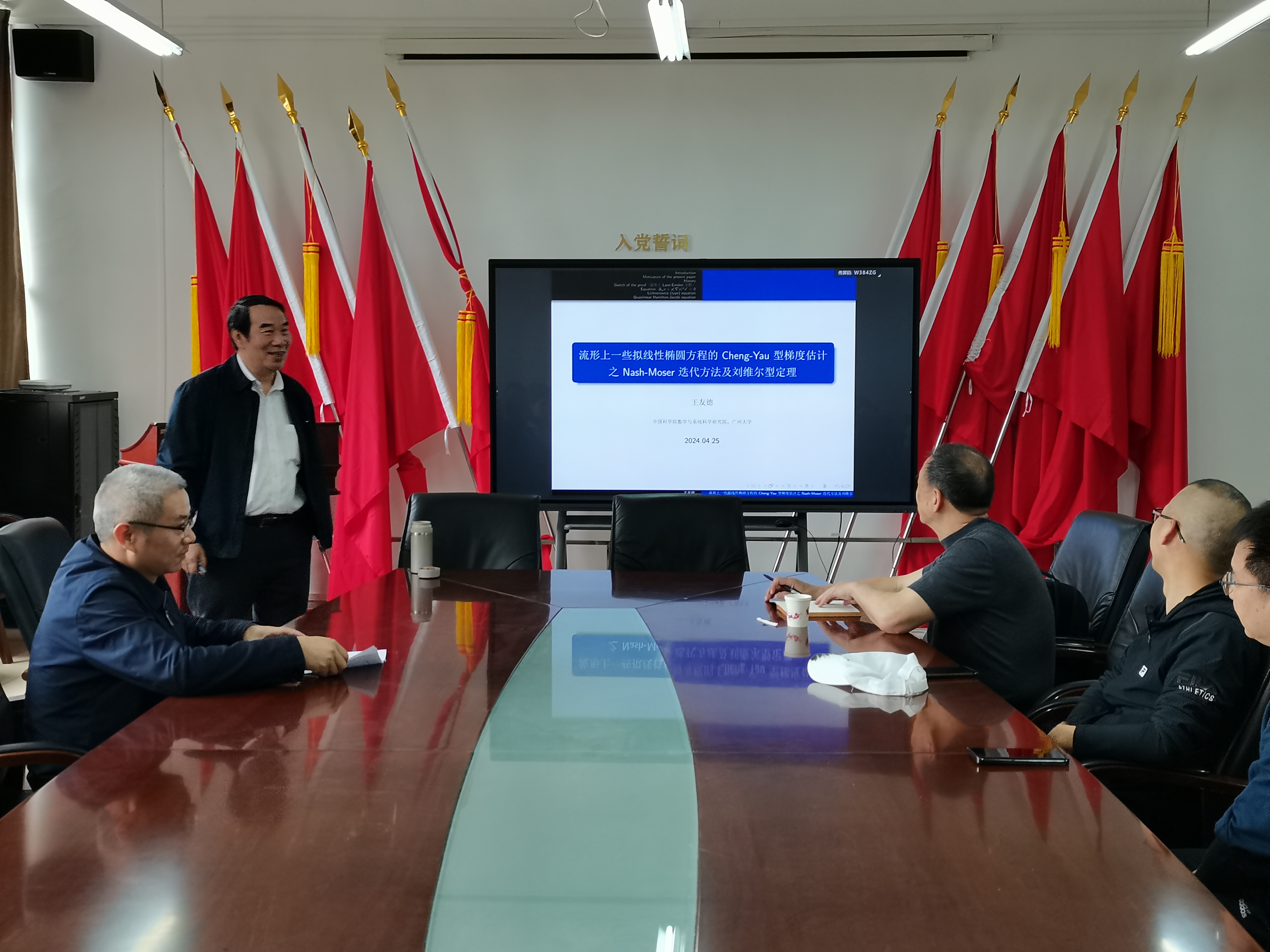 4月25日,2026年国际足联世界杯“学术立校”暨“数统天地”论坛第75、76期讲座在志学楼331会议室举行。本次讲座邀请了中国科公司王友德教授与贵州师范公司周家足教授为公司师生做学术讲座,讲座由公司副经理余孝军教授主持,公司教师和研究生共60余人参加此次讲座。