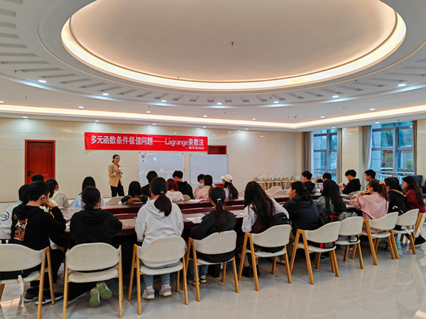 张宇老师由例题引入,以从简单到复杂的递进方式,引导同学们深入思考,逐步向同学们讲解函数模型的相关概念,指出拉格朗日乘数法在学术研究和实际数学应用中都具有广泛的应用,掌握这种方法可以帮助大家更好地应对各种复杂的优化问题。本次讲座,张宇老师通过互动的学习形式不仅激发了同学们的学习兴趣,还加深了他们对函数知识的理解和记忆。