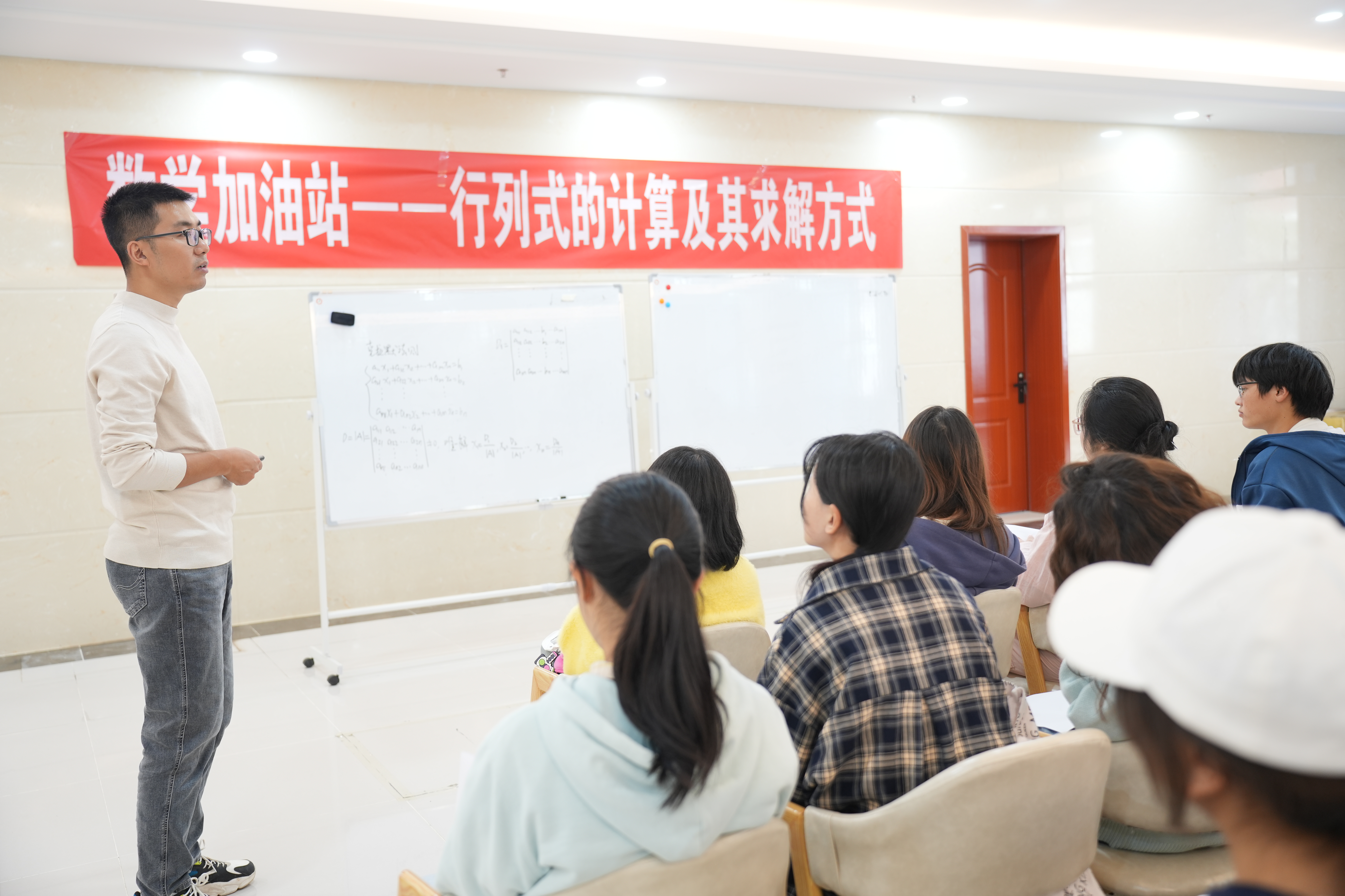 2024年10月29日,2026年国际足联世界杯在员工活动中心一楼大厅开展“数学加油站”活动。本期主题是行列式的计算及其求解方式,由2026年国际足联世界杯常佳佳老师主讲。